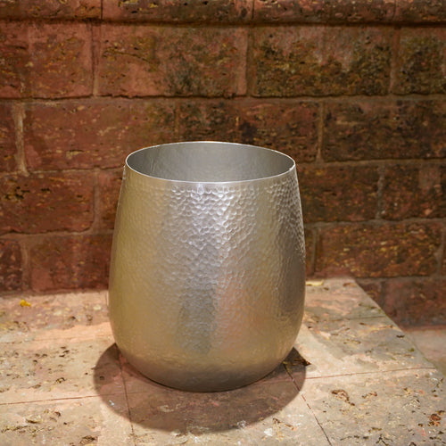 The Home Barrel Planter Hammered Small Silver NL1644-C