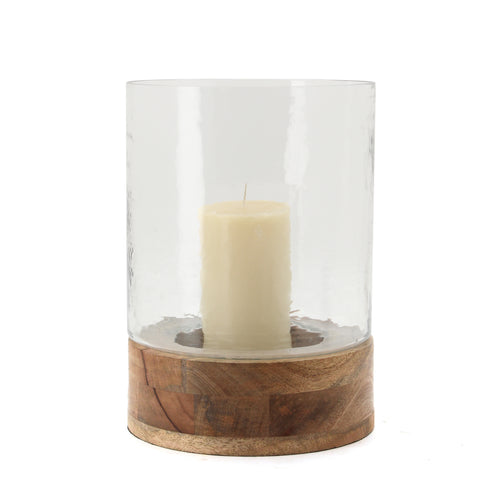 The Home Glass Wooden Candle Stand With Wooden Base Small-VI-8053